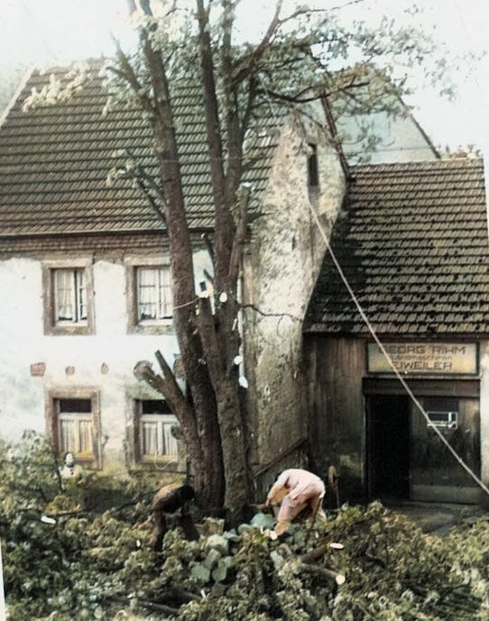 Schmids Schorsch und seine Tankstelle vorm Haus. Heute Lebacher Str. |